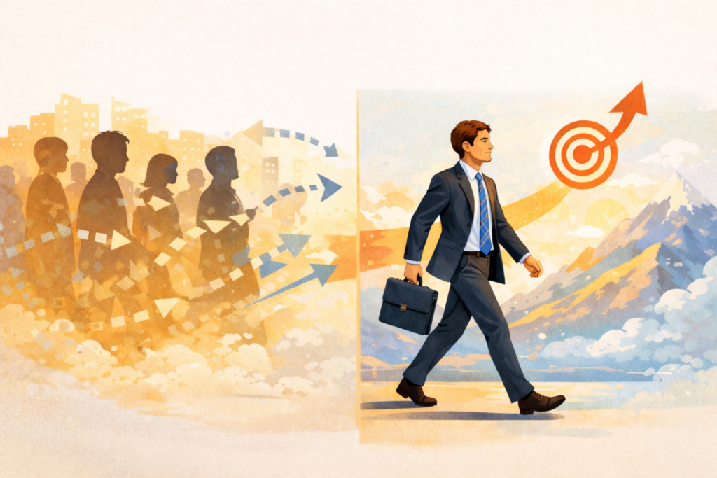が、言いたいことは、周りの常識に流されることはないということです。あなたが持っている目標に向けて動くとき、周りがこうだから..業界の慣習がこうだから…いつもこうやっているから…に、流される必要はないということ。