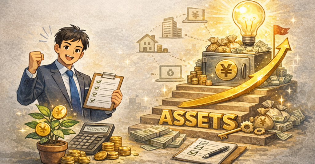 金持ち父さん・貧乏父さんが言う「お金を生み出す資産」を作ること(目標を達成する資産)。
